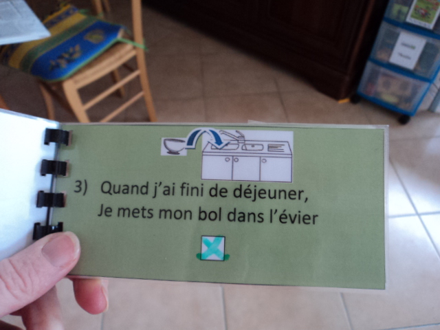déjeuner... la mise dans l'évier, l'habillage... nécessitent de le relancer. Par