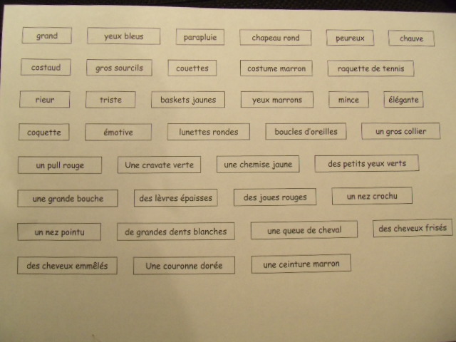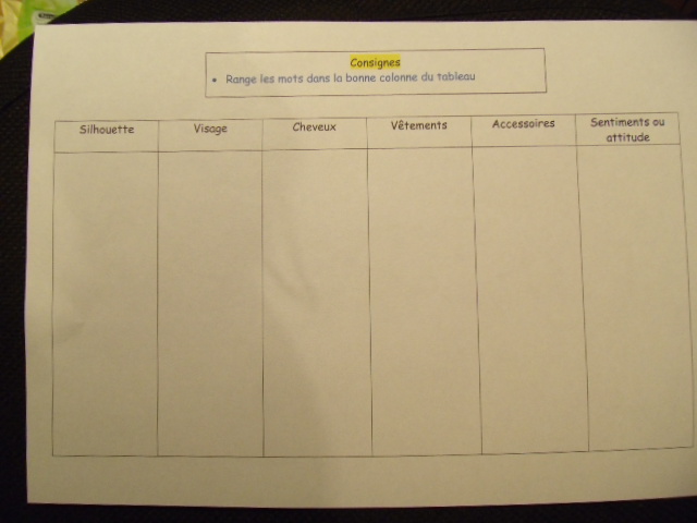 du vocabulaire qui permettra de construire des portraits. Plus tard, mais je ne