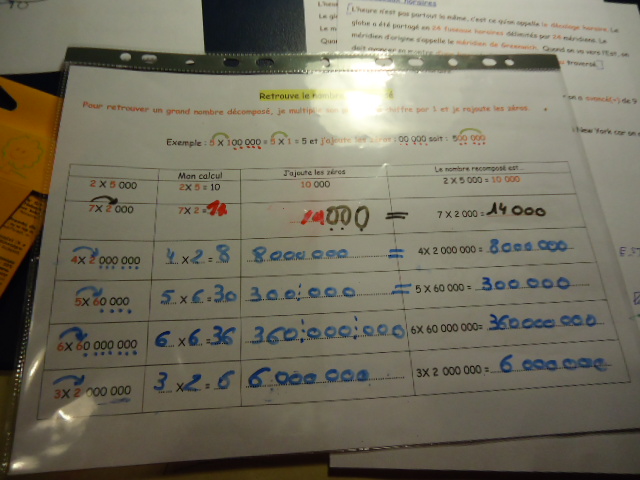 Trop fière, je savais que le petit prince était au point pour lire des grands nombres, les écrire, dans un tableau et donc les décomposer… surtout que comme Martine, nous avons bien utiliser les étiquettes Montessori…du genre 6 532 423 = 6 000 000 + 500 000 + 30 000 + 2000 + 400 + 20 + 3… Trop facile.