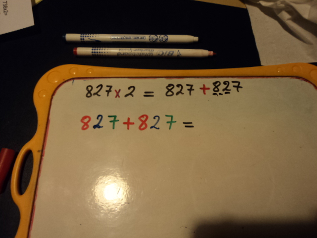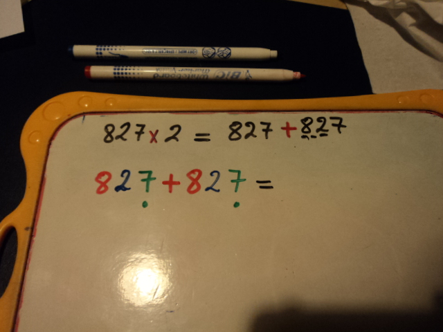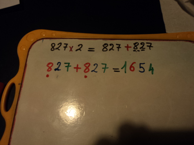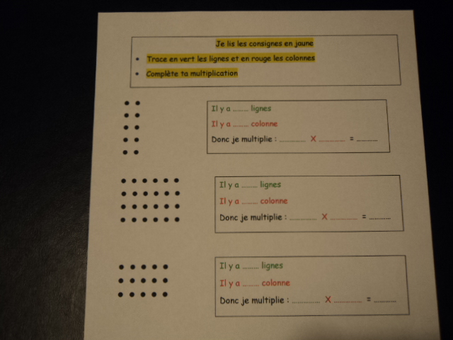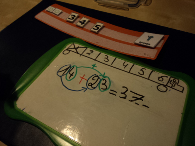 Pour aborder la compréhension de la multiplication nous avons d’abord essayer de démontrer que c’était plusieurs fois la même chose… donc, sur les conseils de notre psychologue préférée, nous avons fait en jouant, des multiplications toutes la journée, sans jamais prendre une feuille ou des tables ou un crayon…