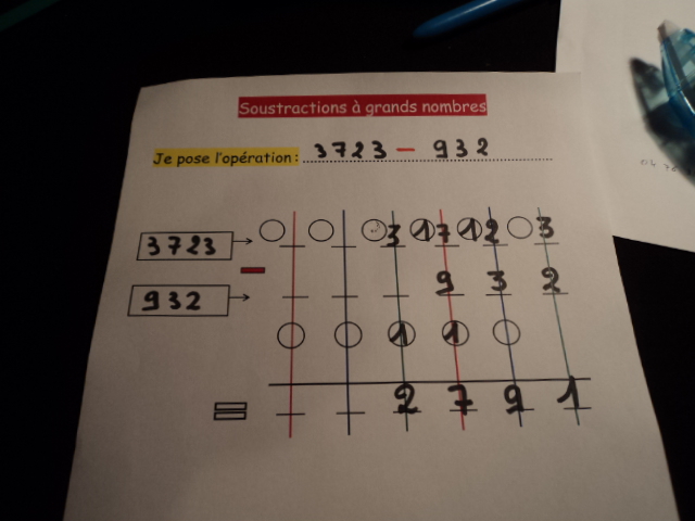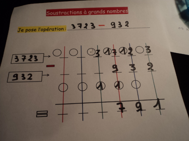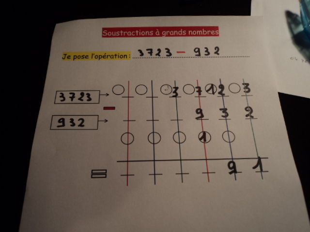 ce qui lui restait. Nous écrivions ensuite l’opération sur les lignes