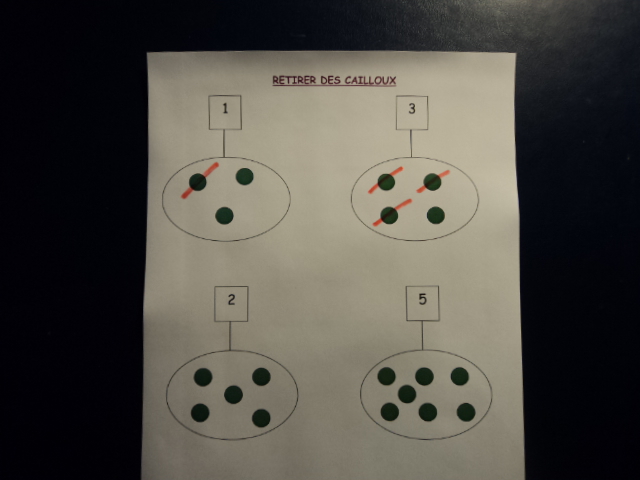 les cailloux symbolisé et un nombre à retirer dans une étiquette. Dans un 1er