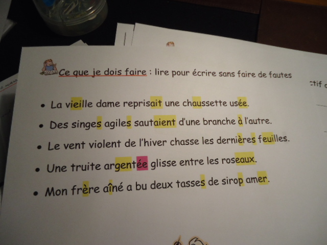 Pour que le petit prince réussisse bien sa dictée, je lui tape le texte avec un jeu de couleurs pour identifier visuellement les difficultés orthographiques .