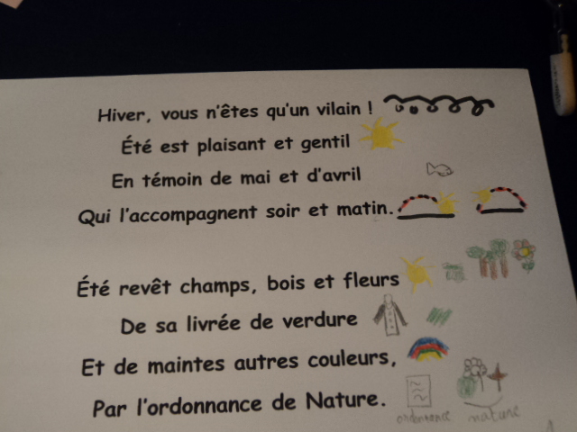 Cependant, certaines poésies furent un peu difficiles à mémoriser car le