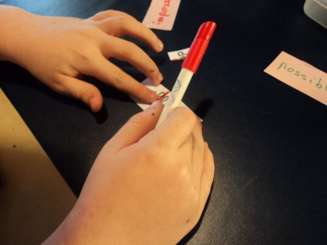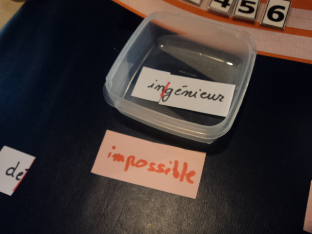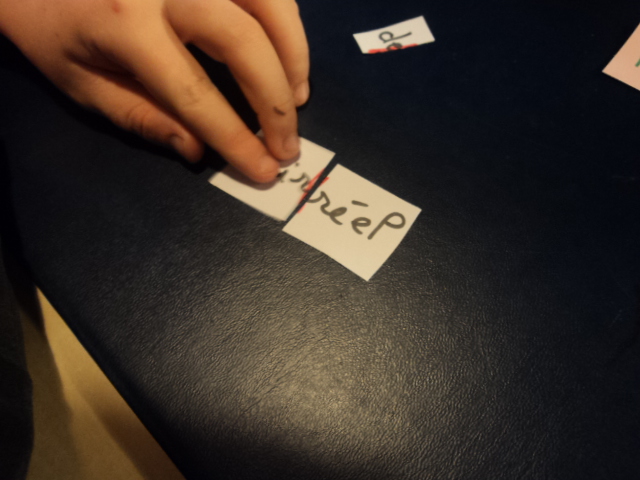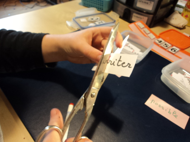 jouer avec les étiquettes en les mélangeant pour construire d’autres phrases.