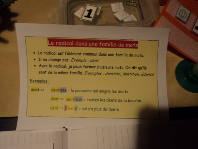 J’écris le radical et je lui ai dessiné 3