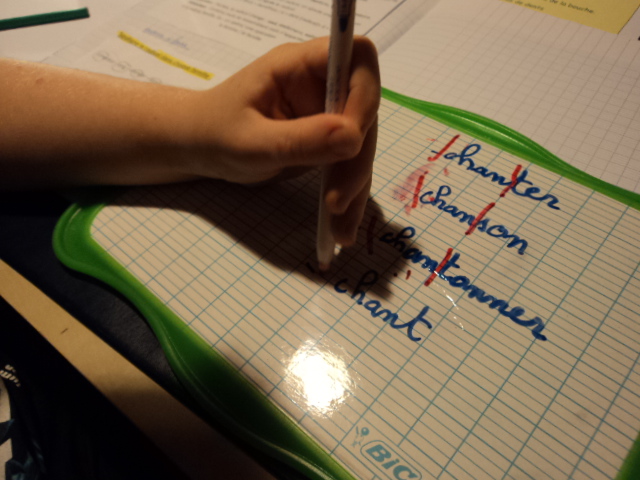 sur la feuille de la maîtresse, pour se débarrasser (certains ou certaines