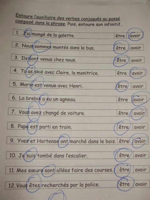 verbes conjugués au passé composé. Pensez à modifier les exercices si vous voulez être plus justes!! |
