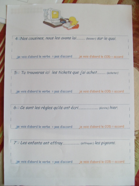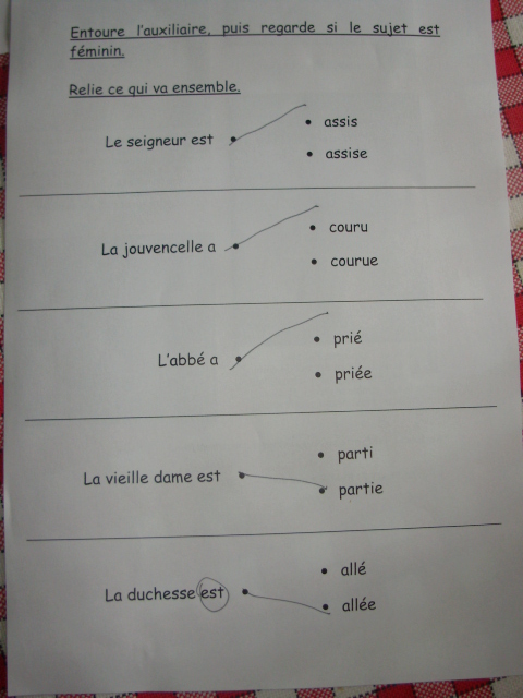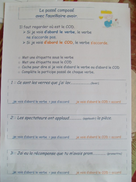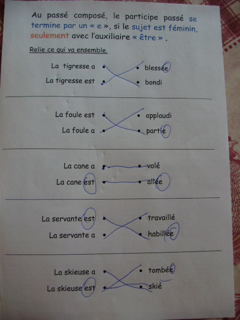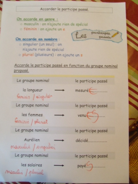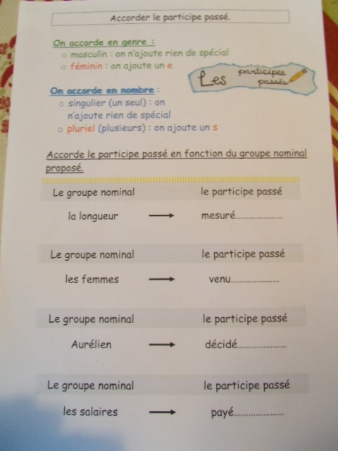 préalablement travaillé sur l'accord du participe passé en fonction du
