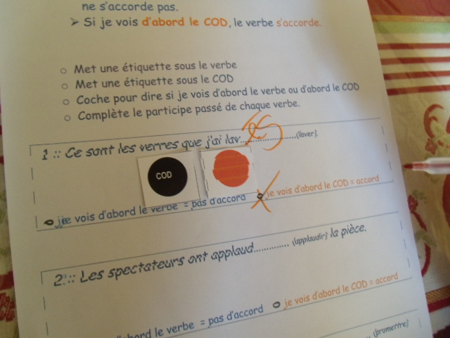 Ici, on rencontre d'abord le COD, donc on coche la petite phrase orange