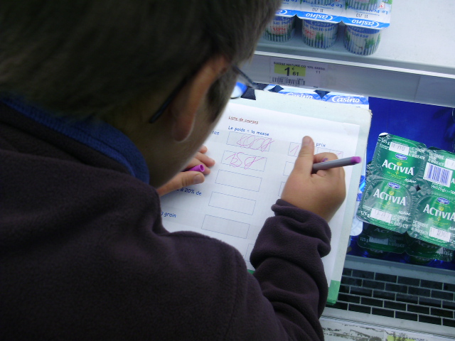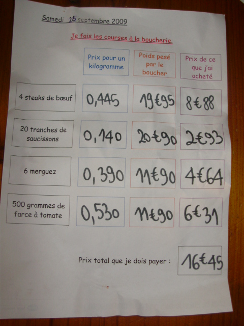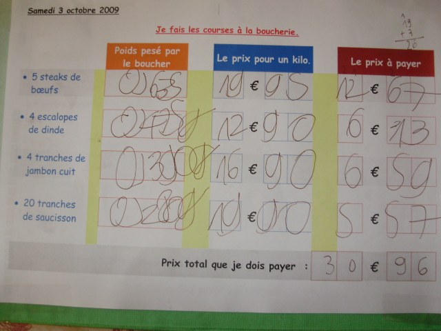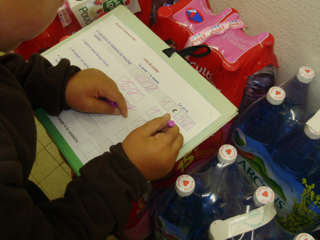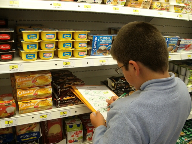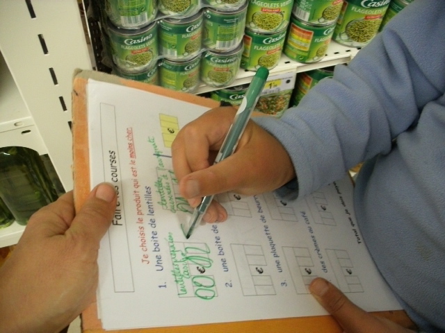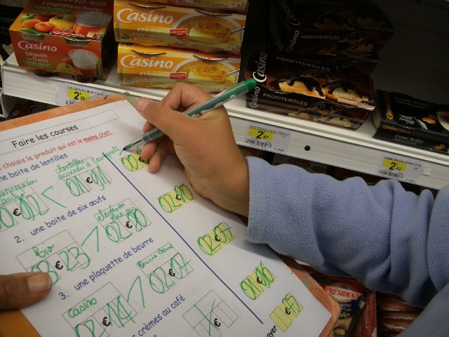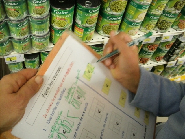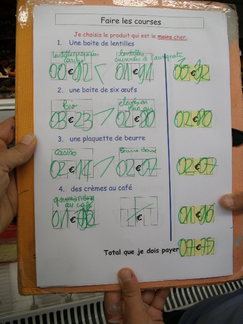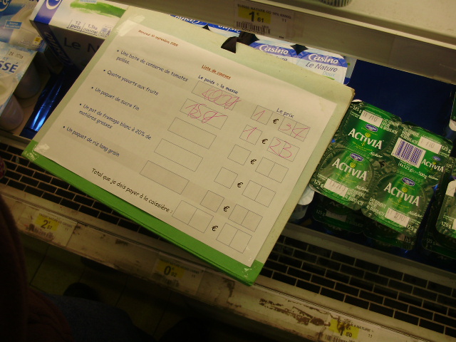 Les courses terminées, on fait l'addition des prix des produits retenus pour savoir combien on va devoir payer à la caisse.
