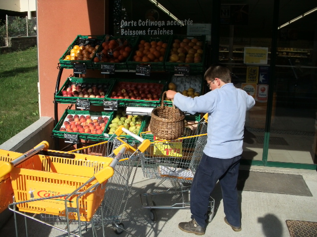 Notre épicerie s'est agrandie. Maintenant, il y a des petits chariots