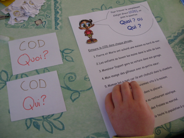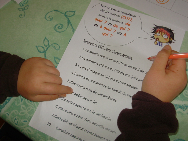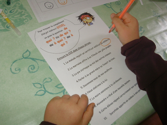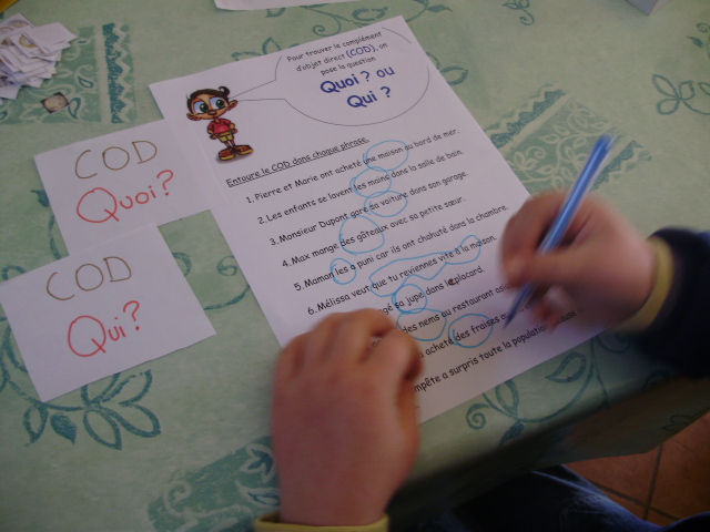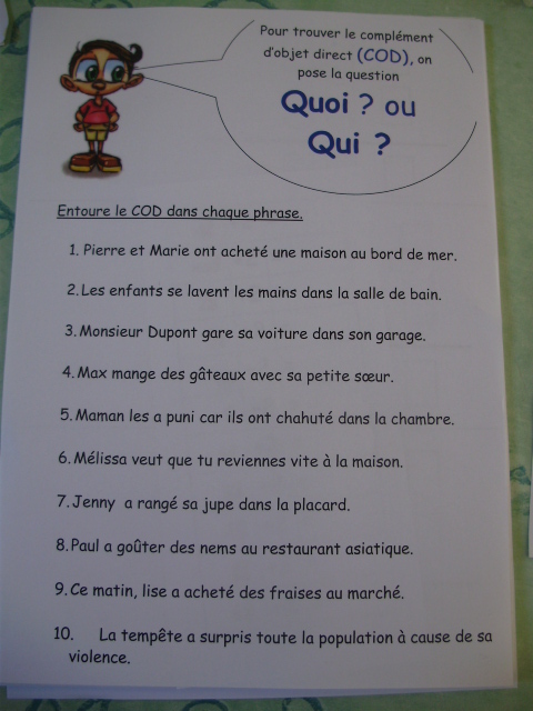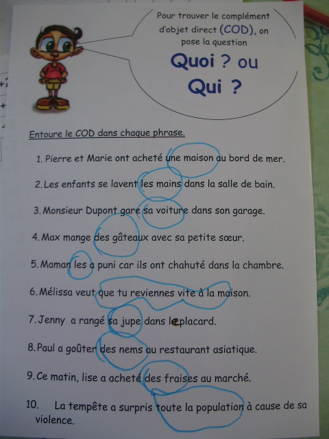 phrases chacune, dans lesquelles il doit identifier le COD. Comme il a