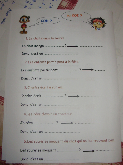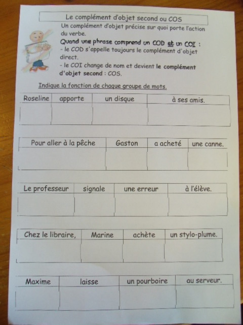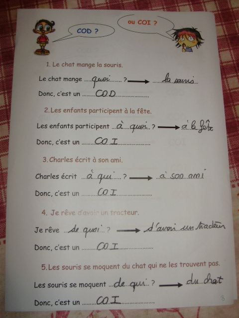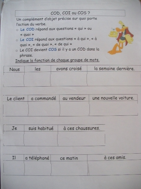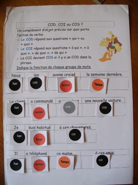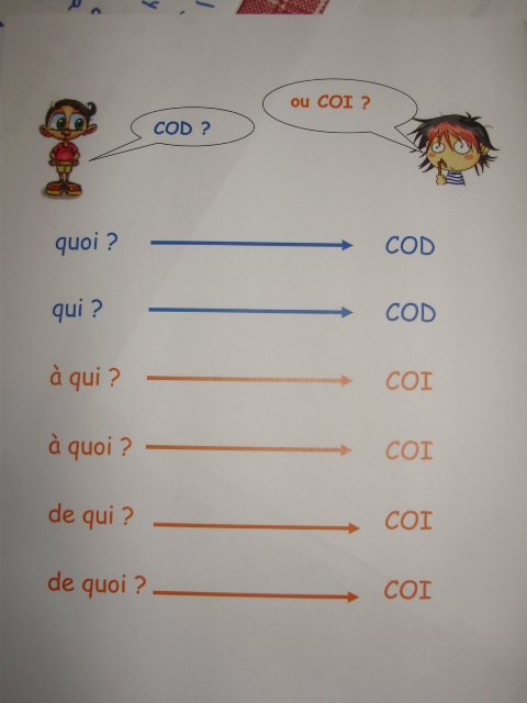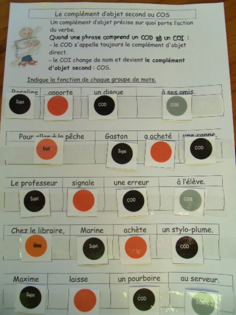 la sixième, on retravaille les notions de COD, COI et COS. Le principe