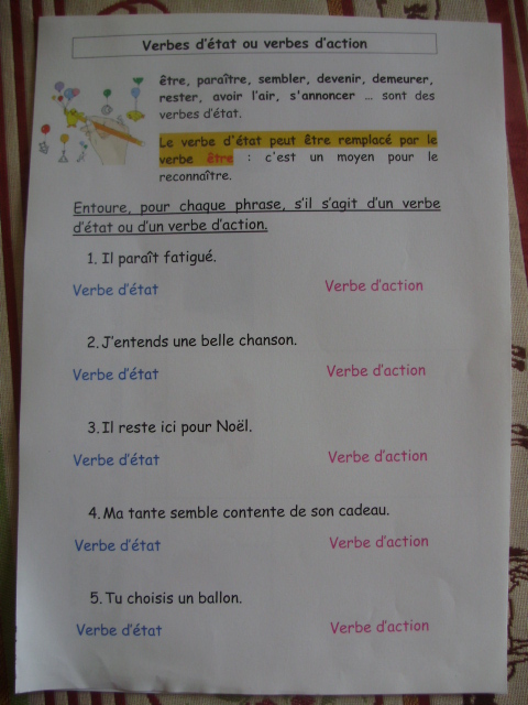 et "verbe d'action" comme je l'ai présentée ici. En effet, même si ce n'est pas utile dans le cadre de ce travail, cela systématise cet acquis.