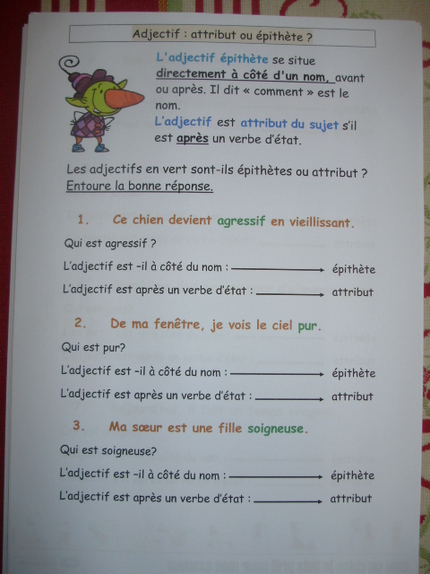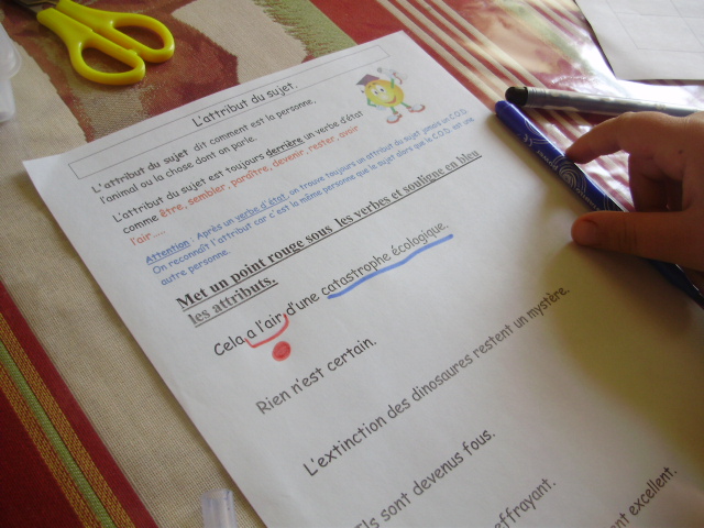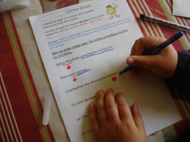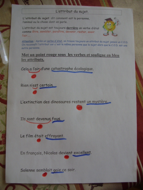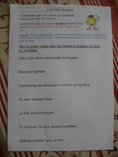 En CM1, on travaille sur l'attribut du sujet. J'ai donc commencé à proposer à notre fils un premier travail qui lui