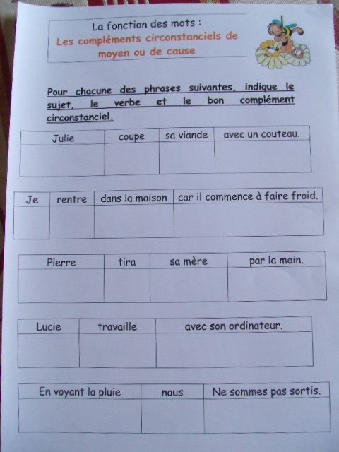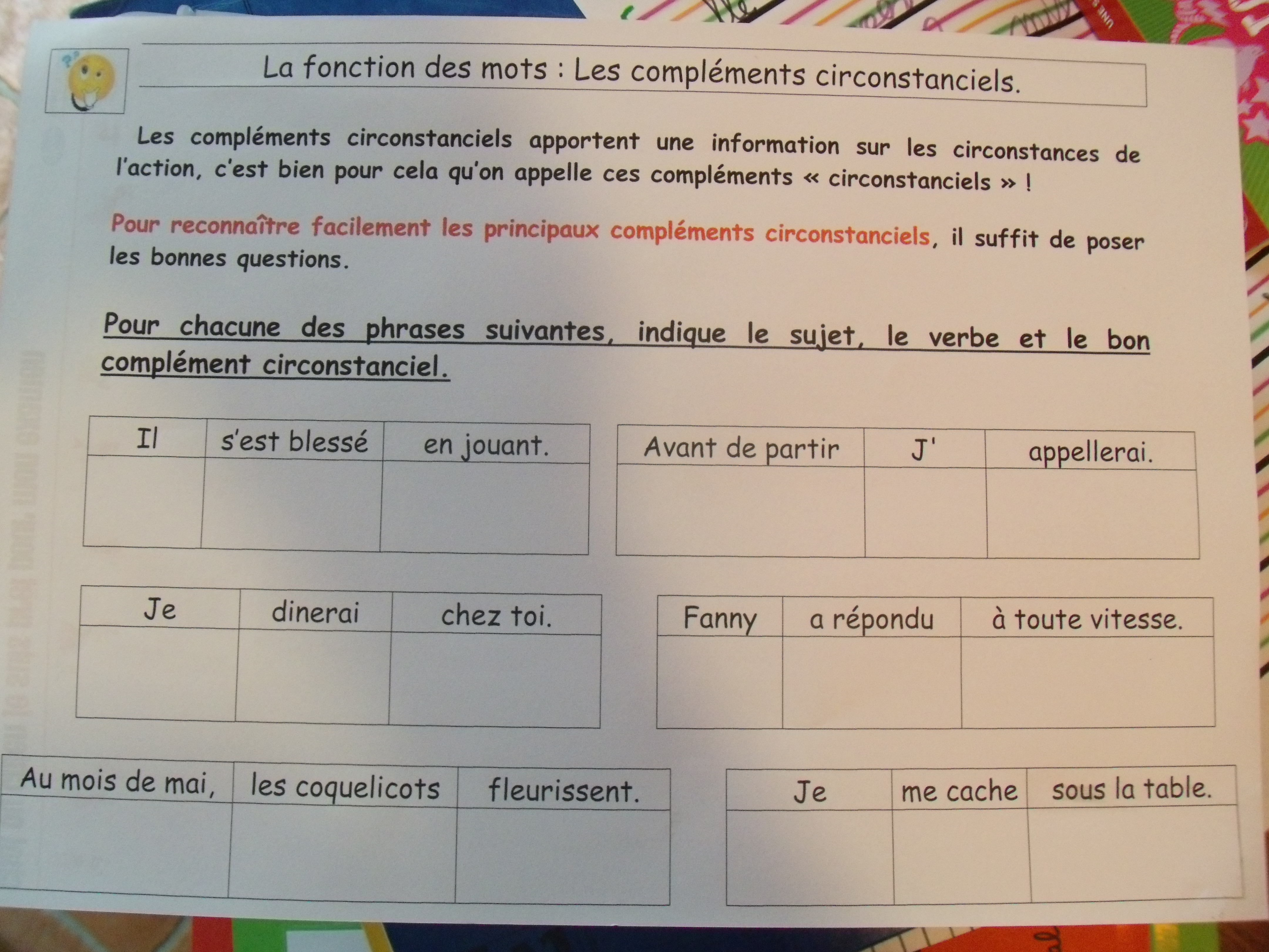 l'accent, à travers ces fiches, sur des compléments circonstantiels