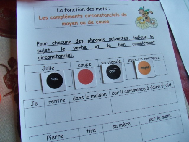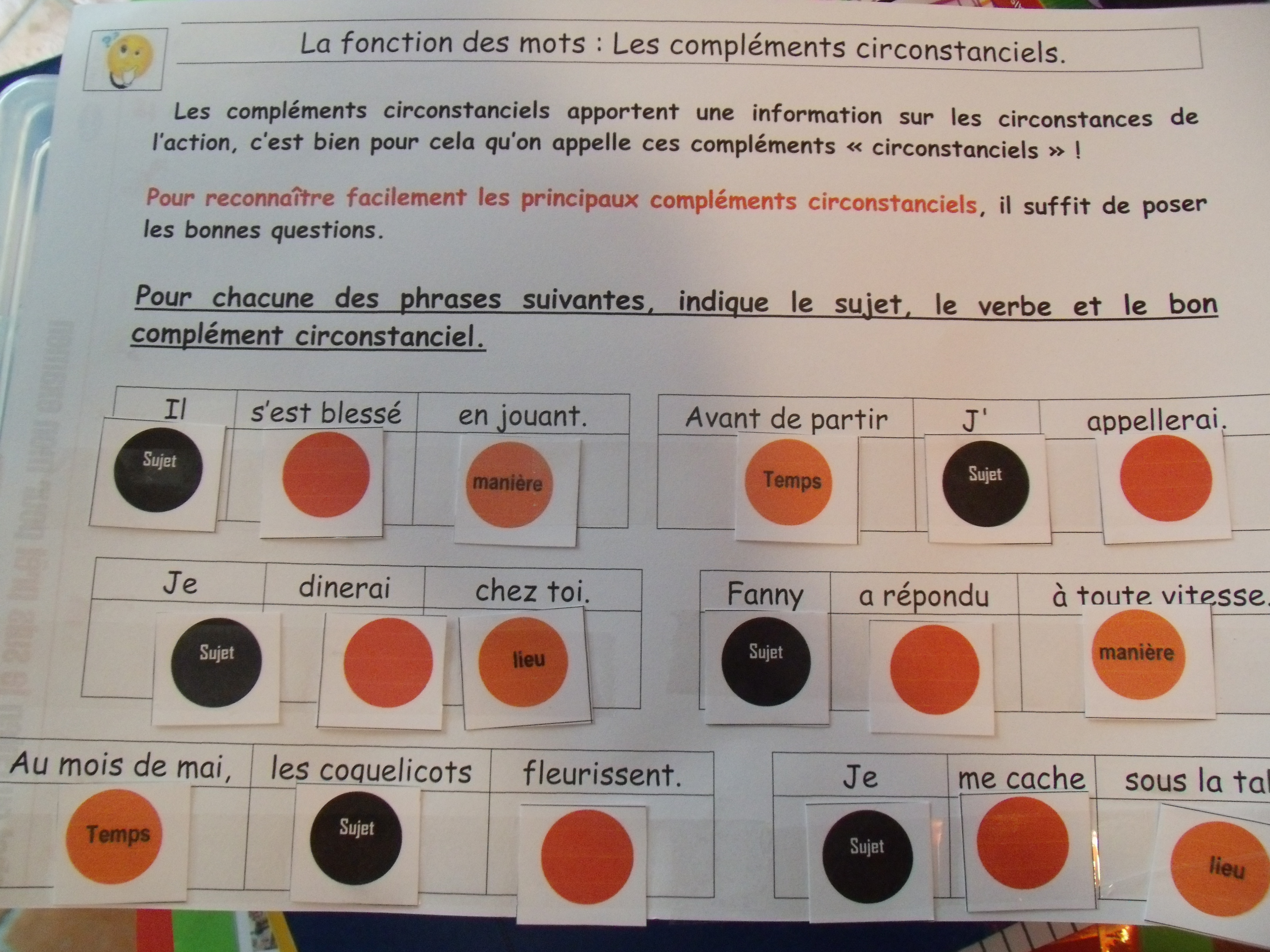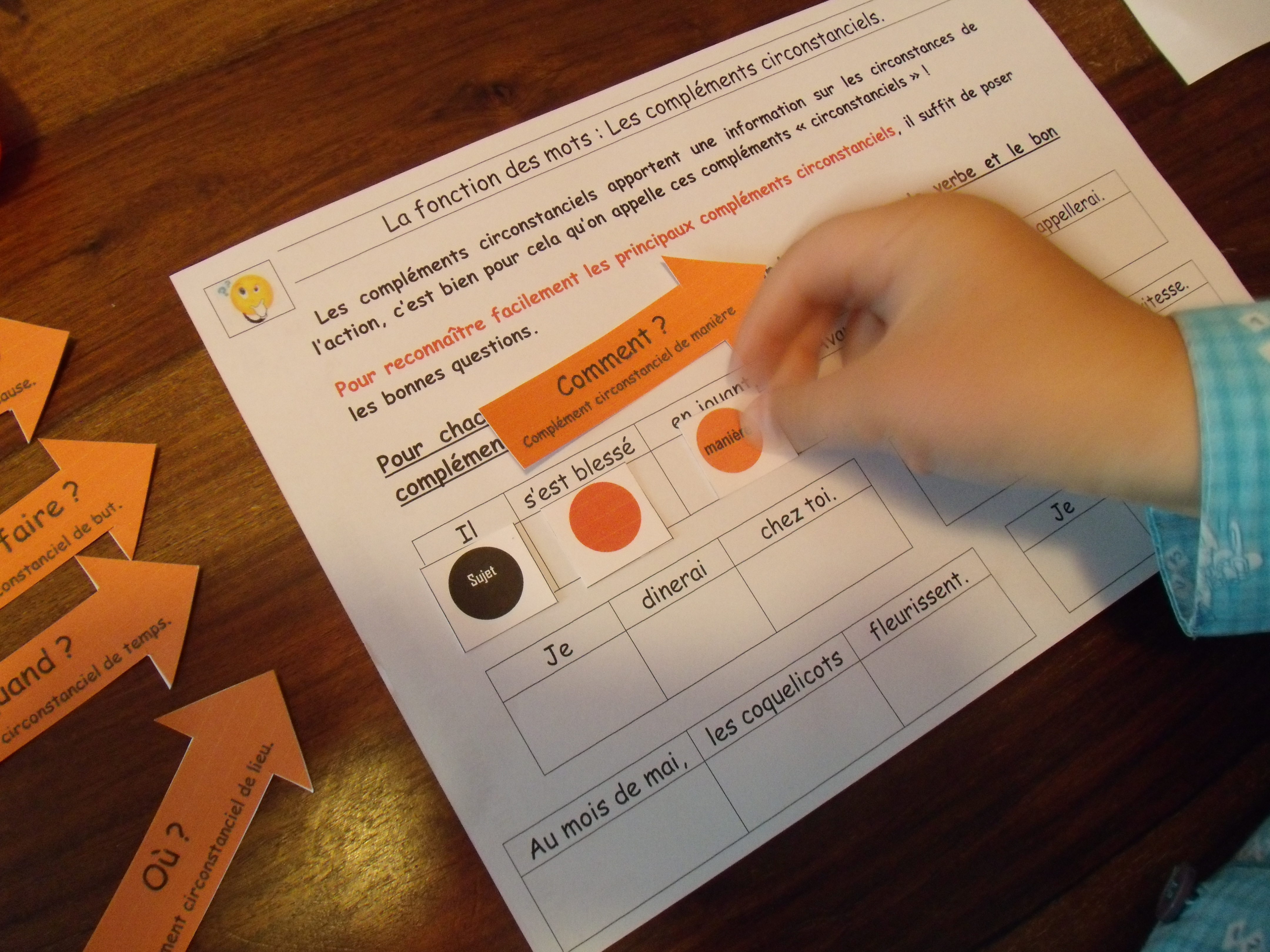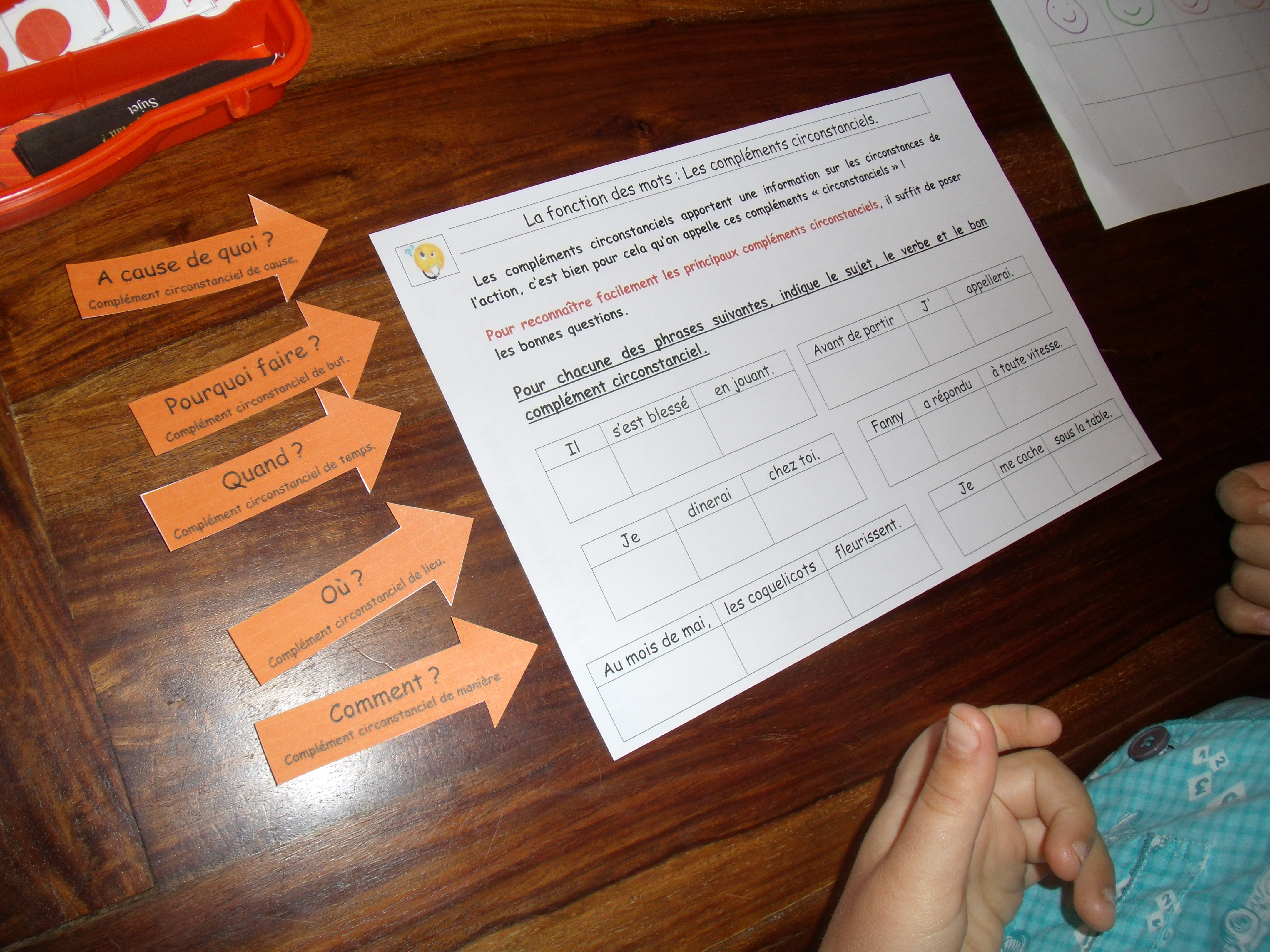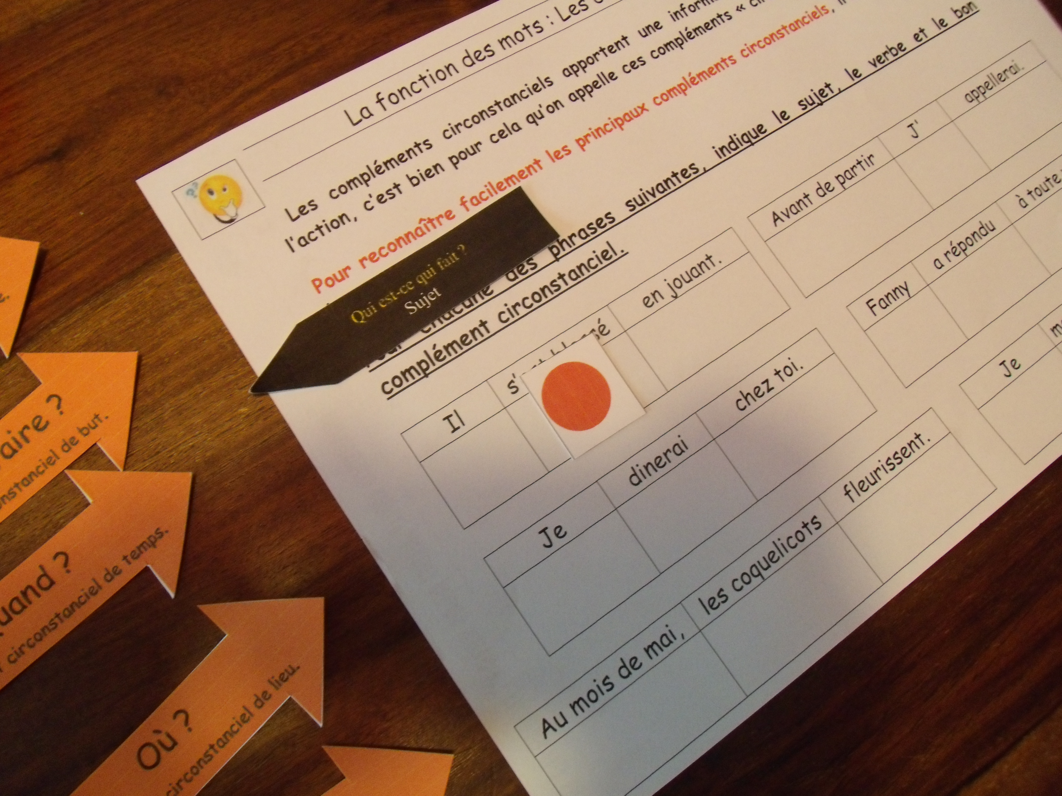 J'ai emprunté à ma façon la présentation Montessori des compléments circonstanciels.