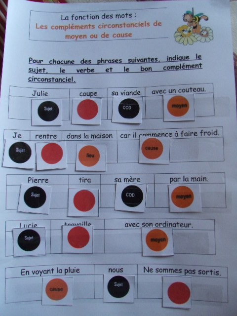 compléments circonstanciels. L'enfant doit positionner sous chaque mot