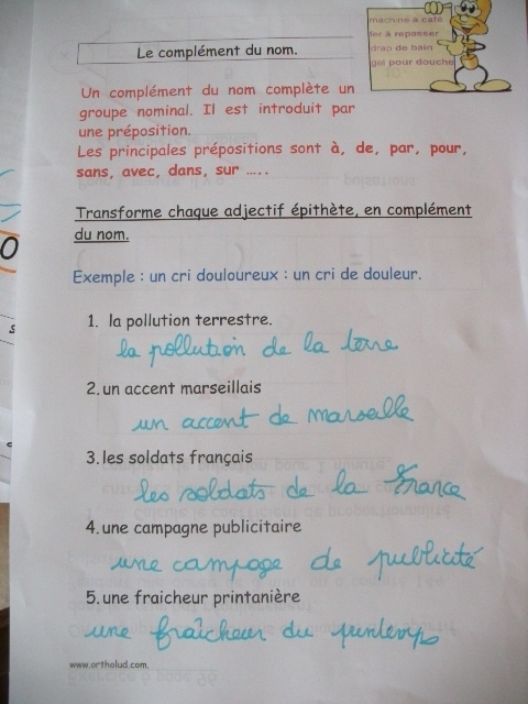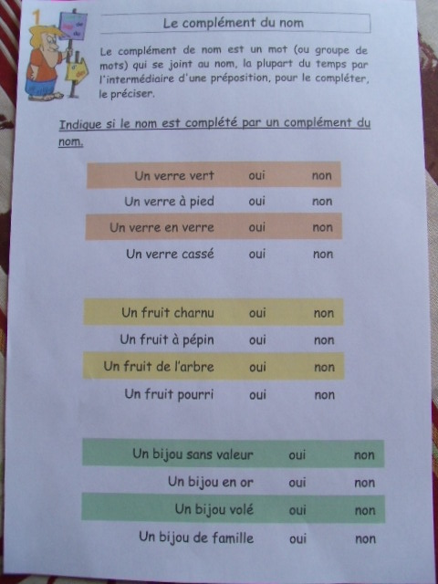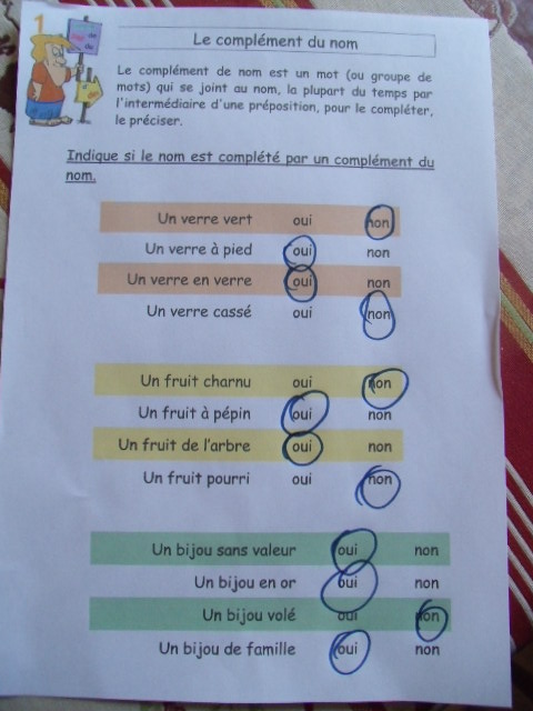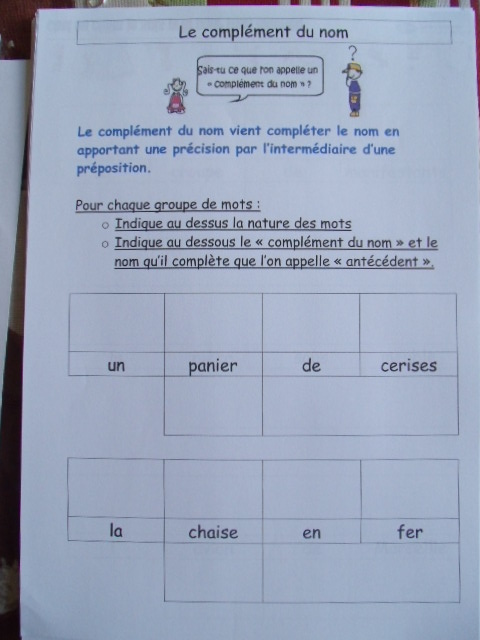 cinquième sur cette notion de complément du nom. Ici, il faut