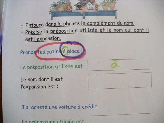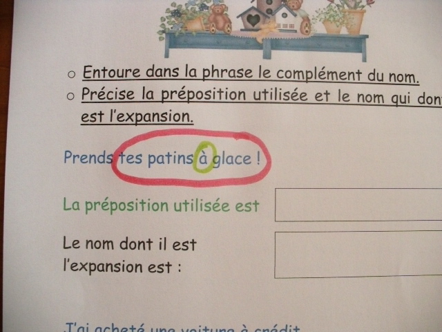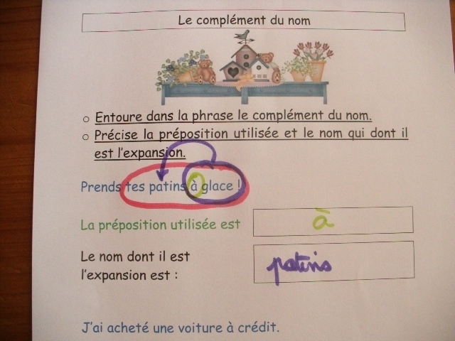 l'apprentissage de la reconnaissance du complément du nom. Ceci est