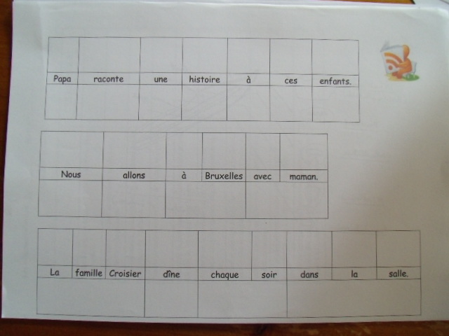 phrase dans la grammaire Montessori. On place au dessus des mots les