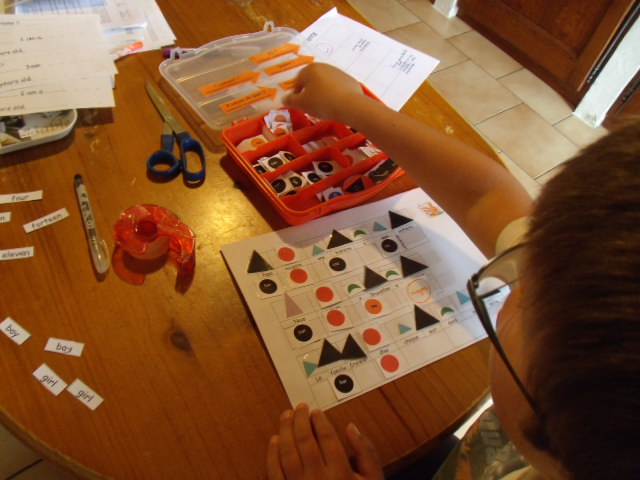 Il s'agit d'exercices que j'ai trouvés sur Ortholud.com et que j'ai adaptés pour les mettre en fiches. Pour faciliter le travail du petit roi, c'est moi qui écrit sous sa dictée.