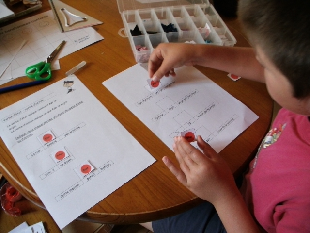 Pour aborder ces notions, j'ai utilisé le travail que nous avons fait sur la nature des mots avec la pédagogie Montessori (voir ici).