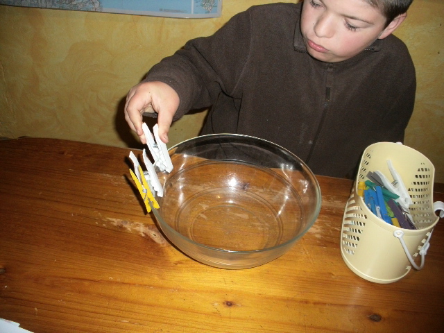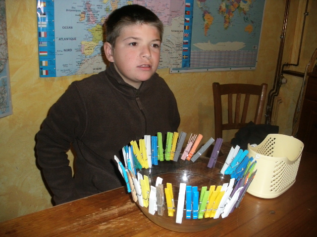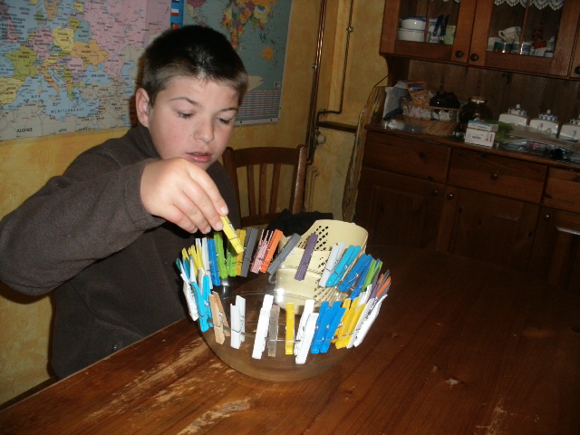 pinces à linges et je lui ai demandé de toutes les accrocher sur le