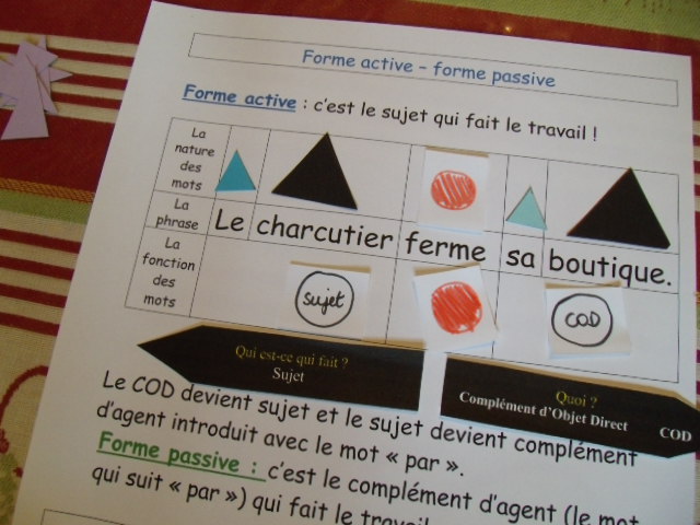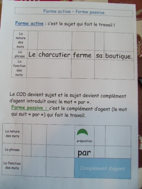 CM1, on commence à aborder la notion de forme active et forme passive.