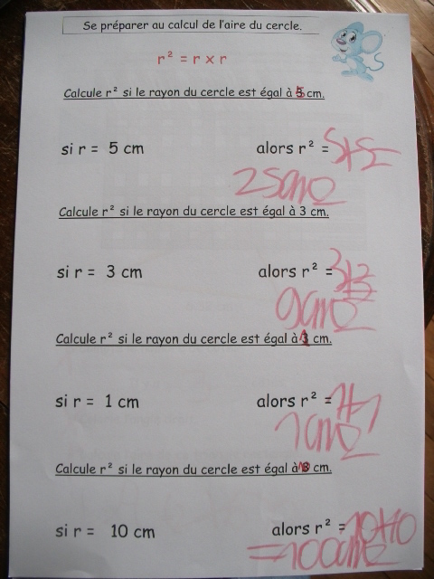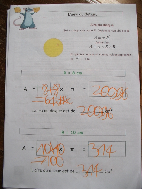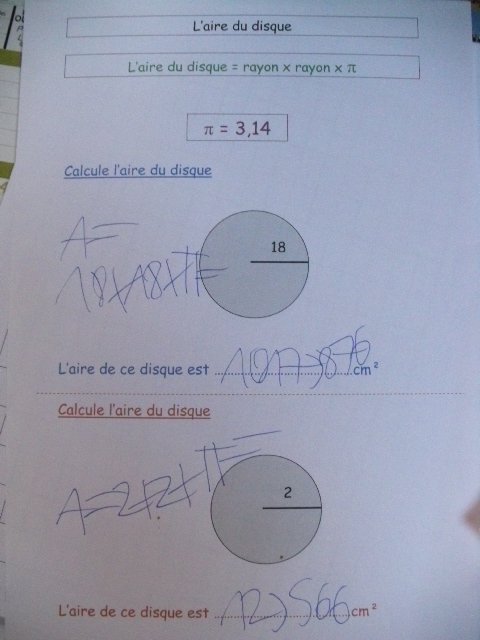 En cinquième, on revoit la notion d'aire du disque. Auparavant, on revoit le notion de carré du rayon.