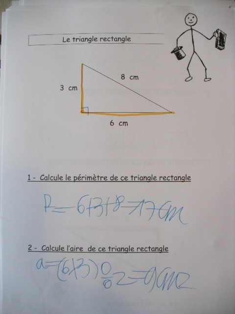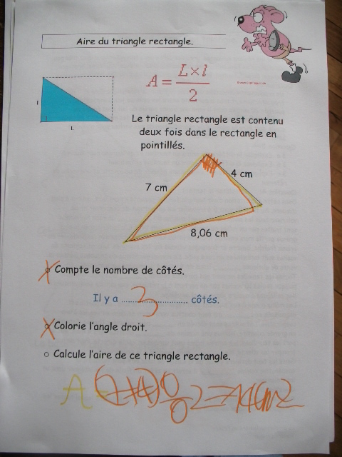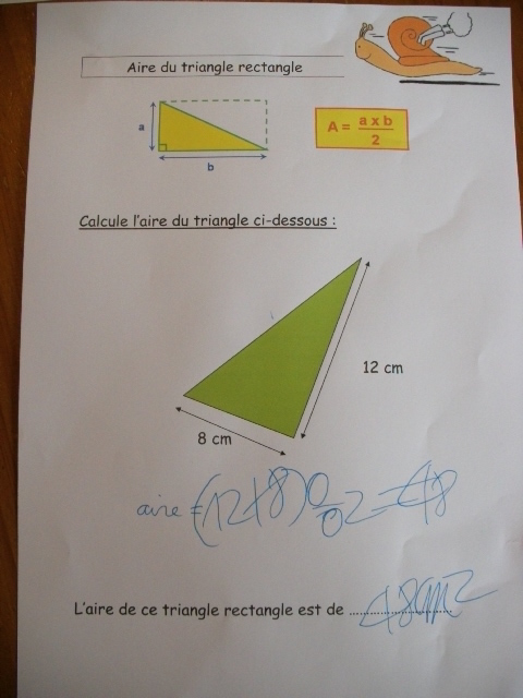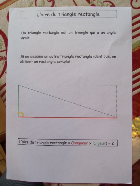 En cinquième, on revoit la notion d'aire de différentes figures, dont le triangle rectangle.