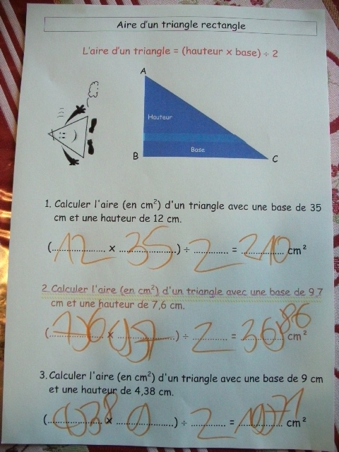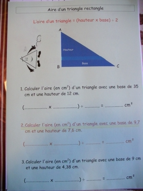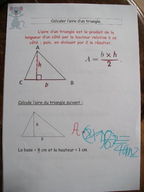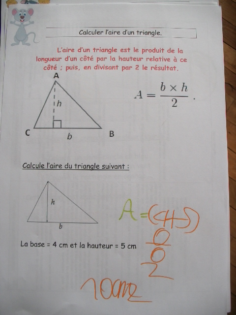 cinquième, on apprend la formule pour calculer l'aire d'un triangle