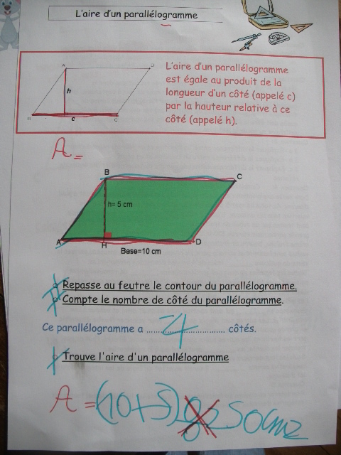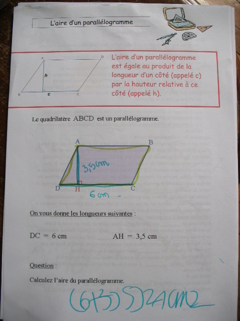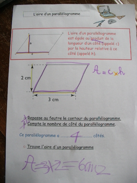 cinquième, on découvre la notion d'aire de parallélogramme.