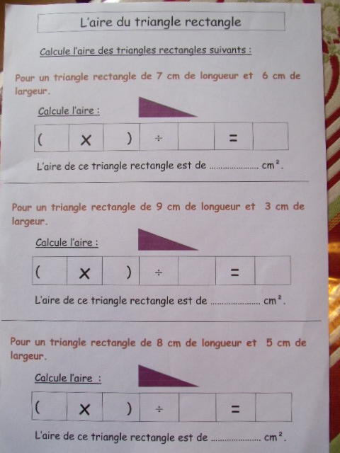 Fiches "aire d'un triangle rectangle"
