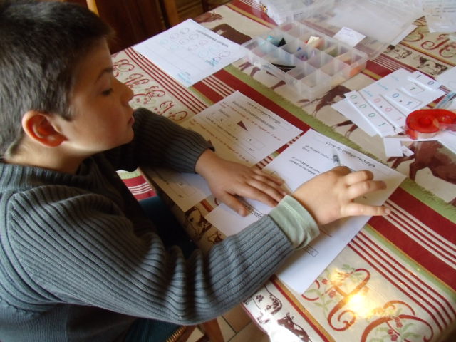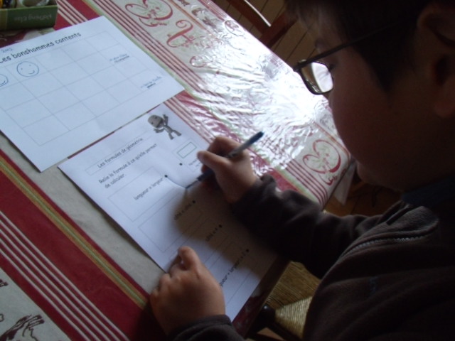 Ici, il la lit attentivement avant de commencer la fiche exercice.
