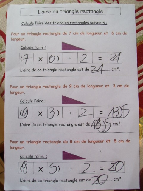 Fiches "l'aire des triangles rectangles - série 3"