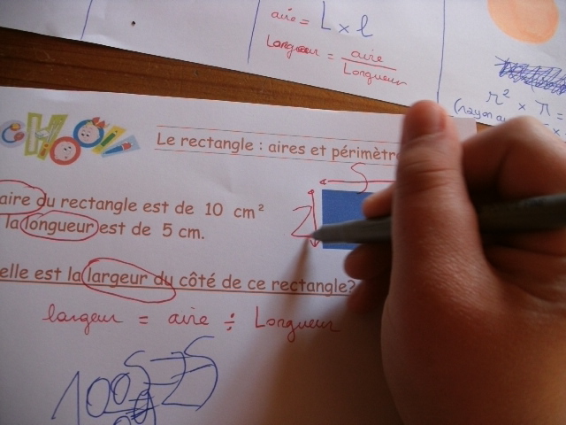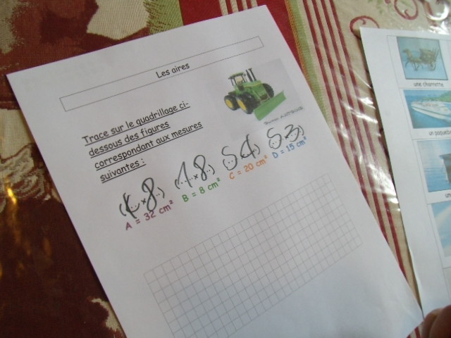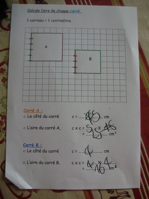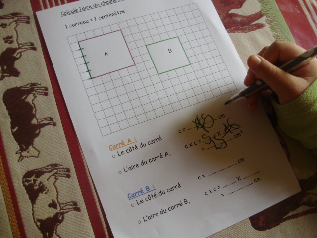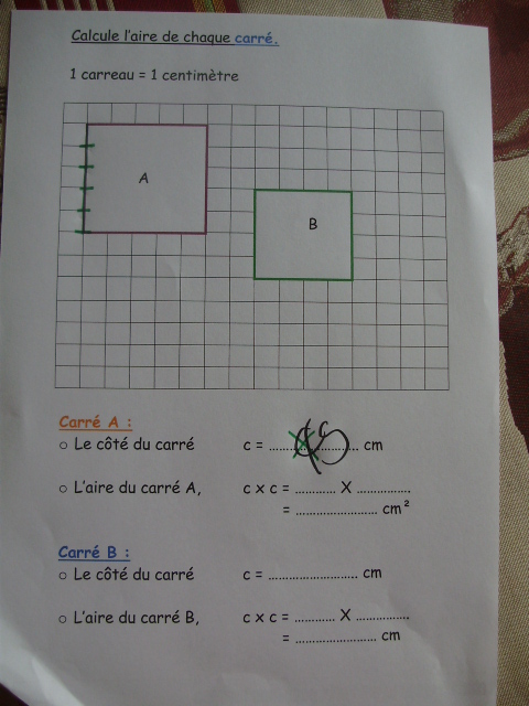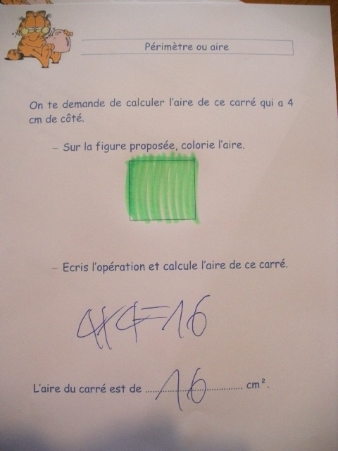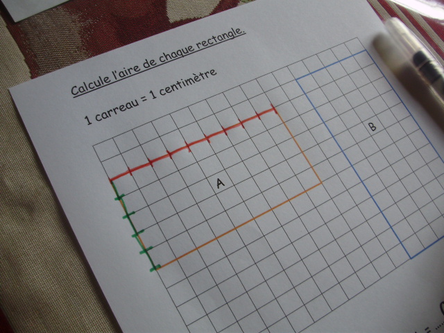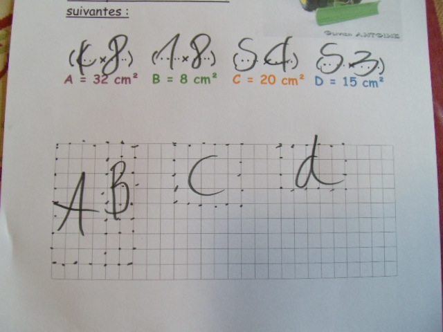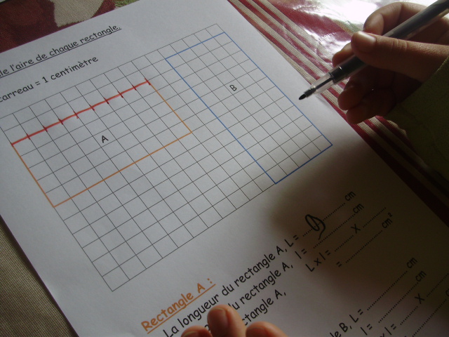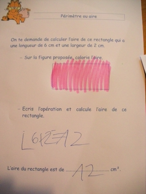 Cela permet, pour le calcul de l'aire, de vérifier que l'enfant prend