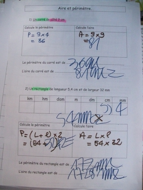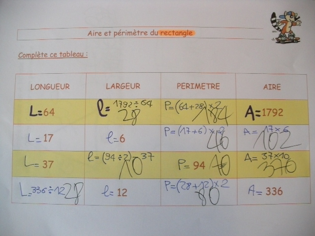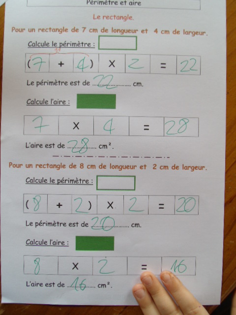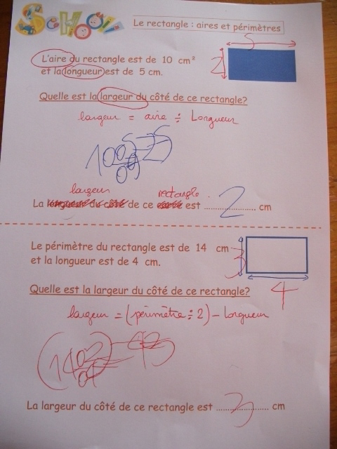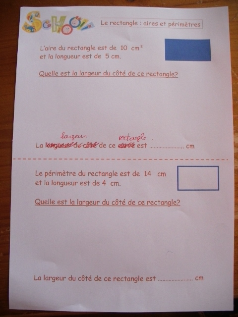 rectangle, qui demandent le calcul de l'aire et du périmètre.