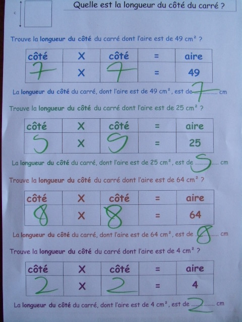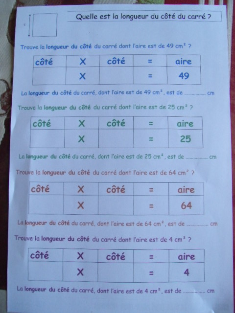 Fiches "longueur du carré"