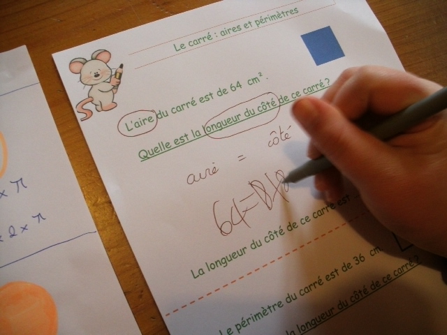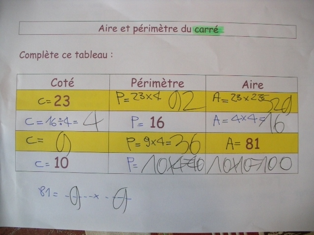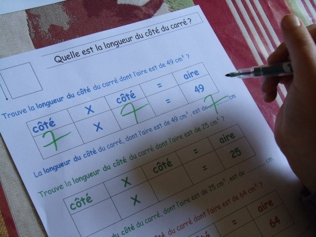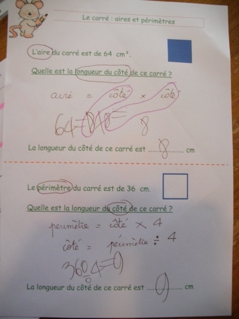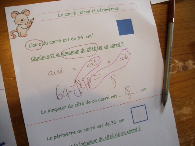 sixième, les enfants ne connaissent pas encore la notion de carré.