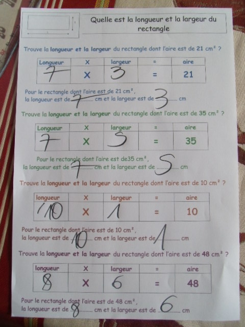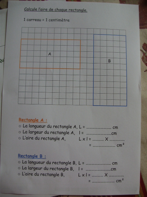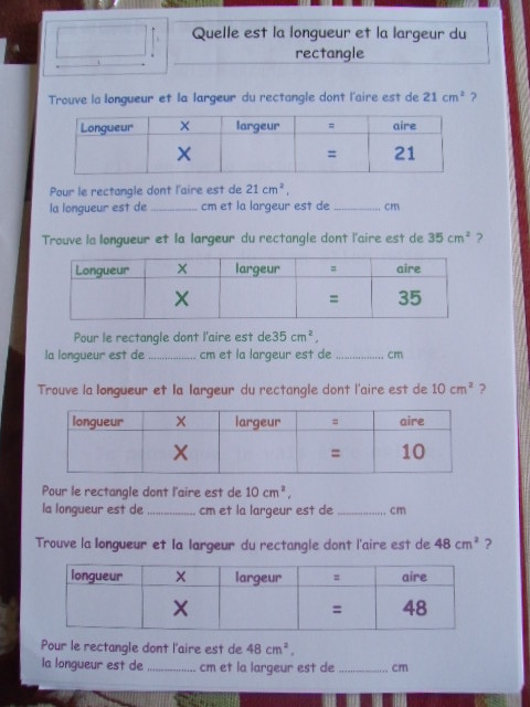 Fiches "l'aire du rectangle"