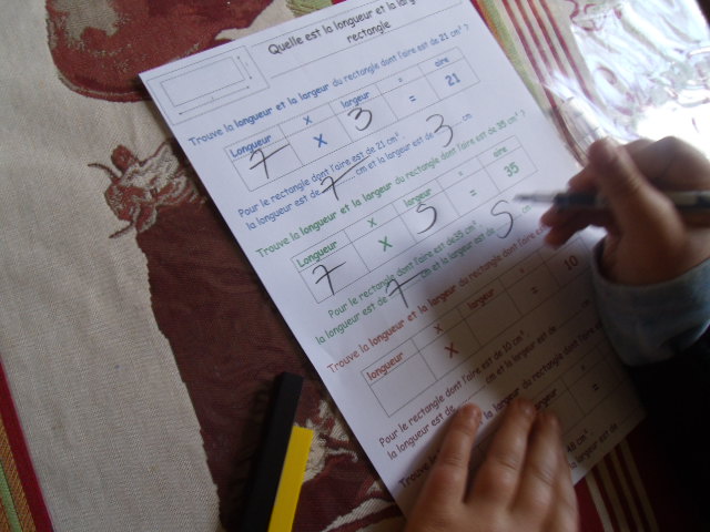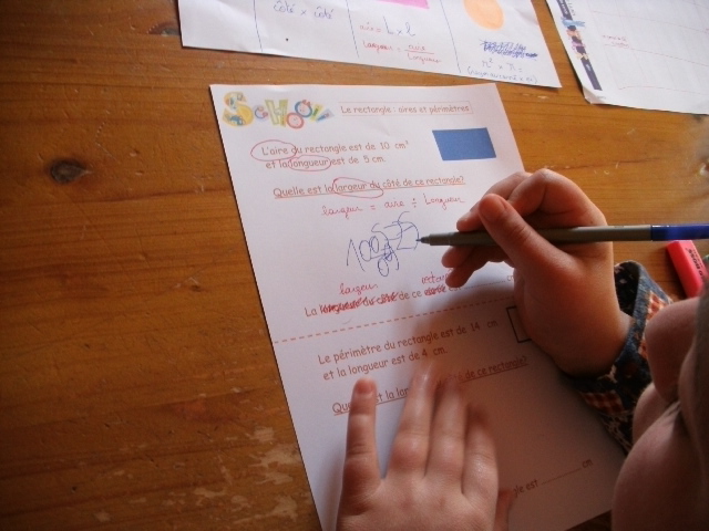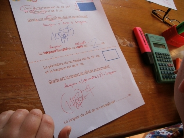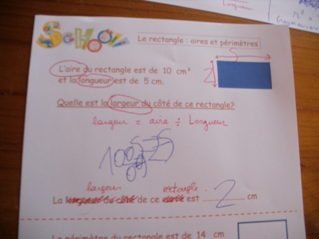 guidé. Ici, on demande à l'enfant d'utiliser les formules de calculs