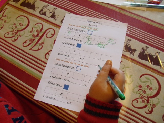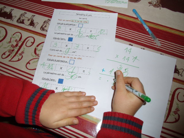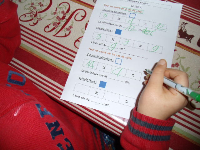 Comme en sixième, on travaille parallèlement sur l'aire et le