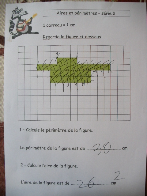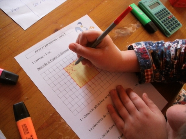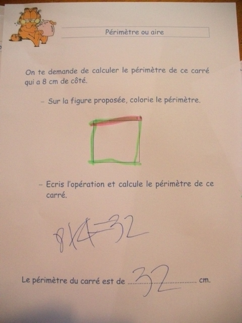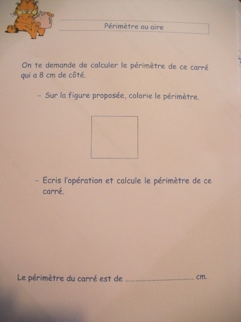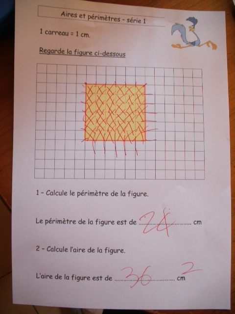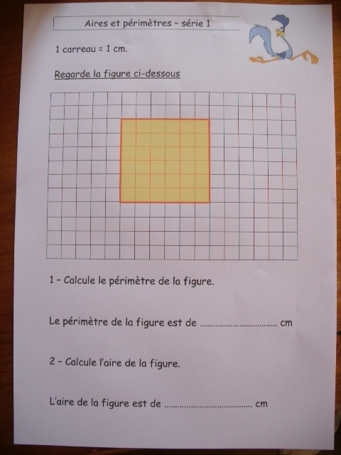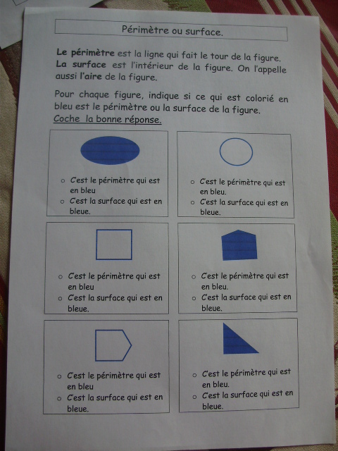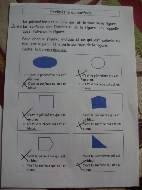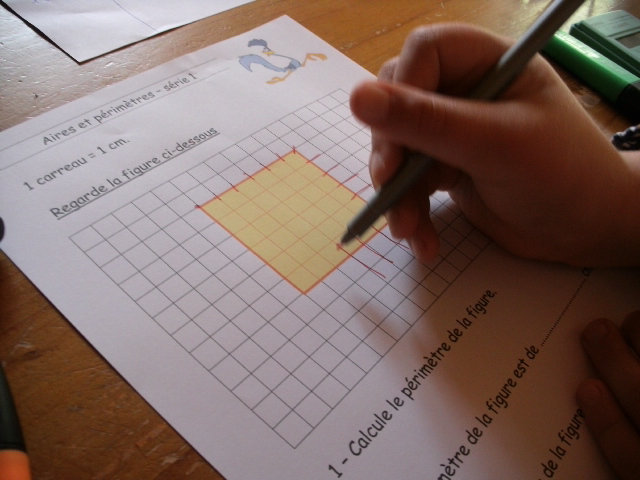 de lui apprendre à distinguer le périmètre de l'aire d'une figure :