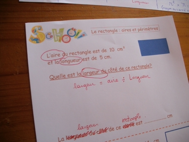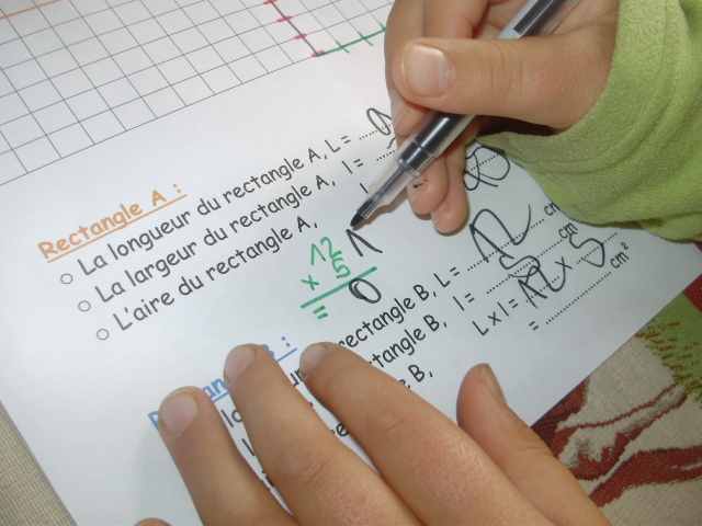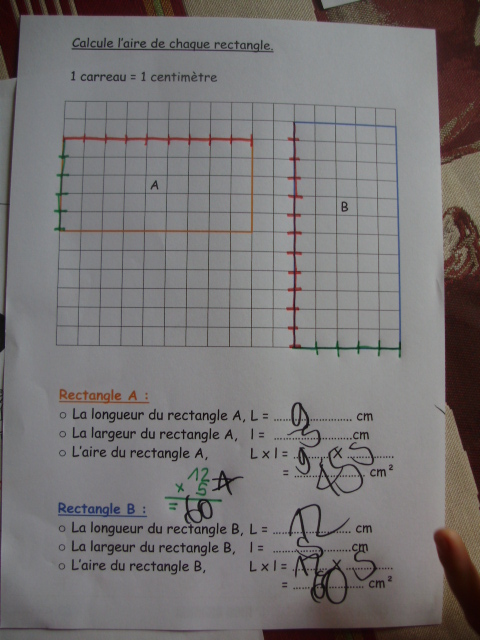 Avec la longueur et la largeur, il peut calculer l'aire du rectangle A.