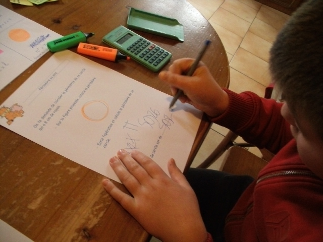 Il inscrit la valeur trouvée sur les pointillés prévus.
