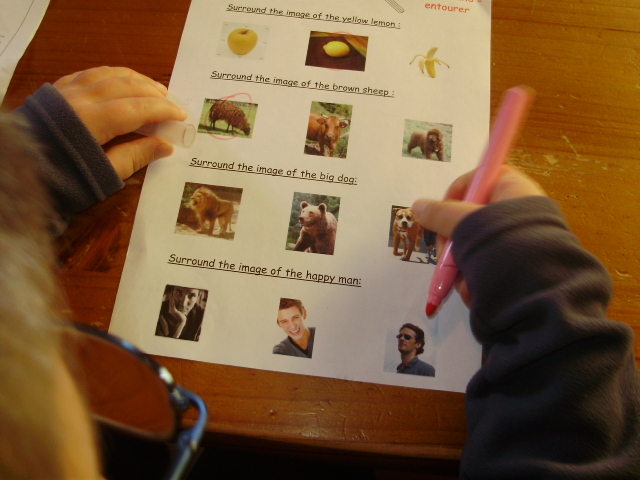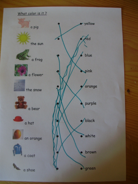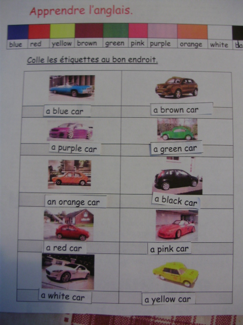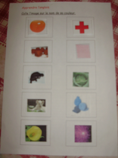 pour vérifier l'acquisition, je propose des fiches sur les couleurs
