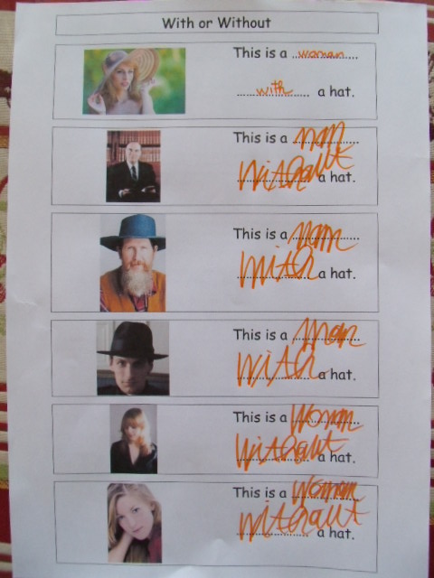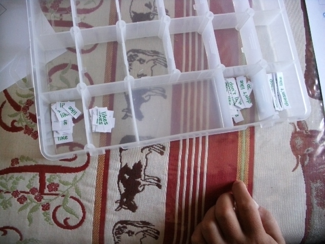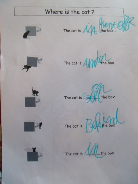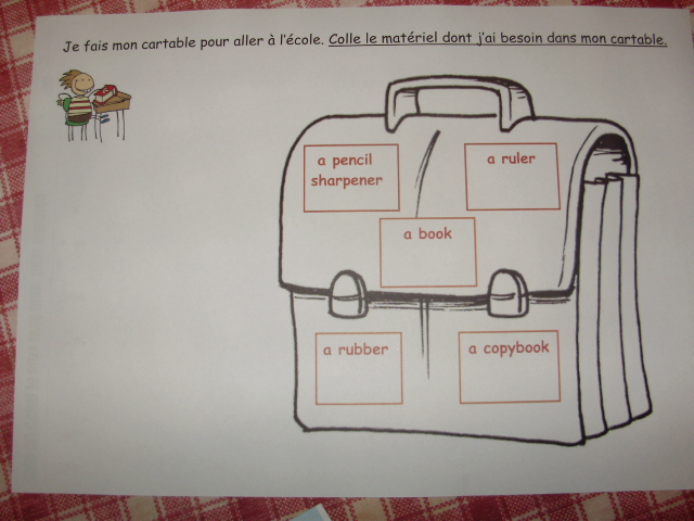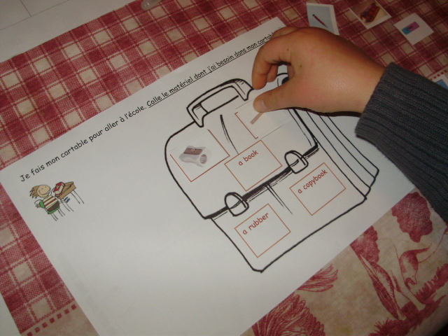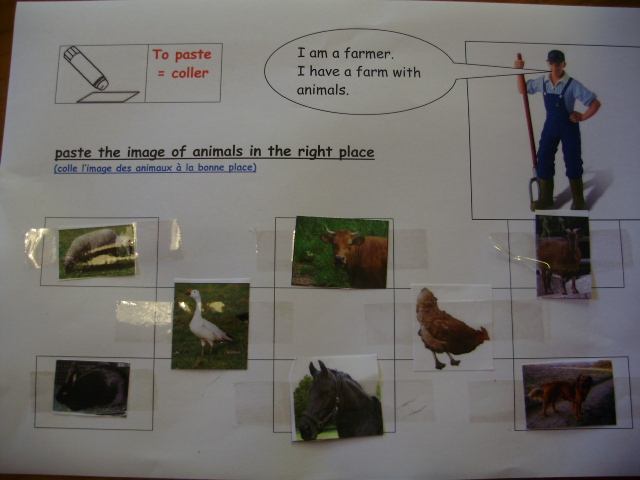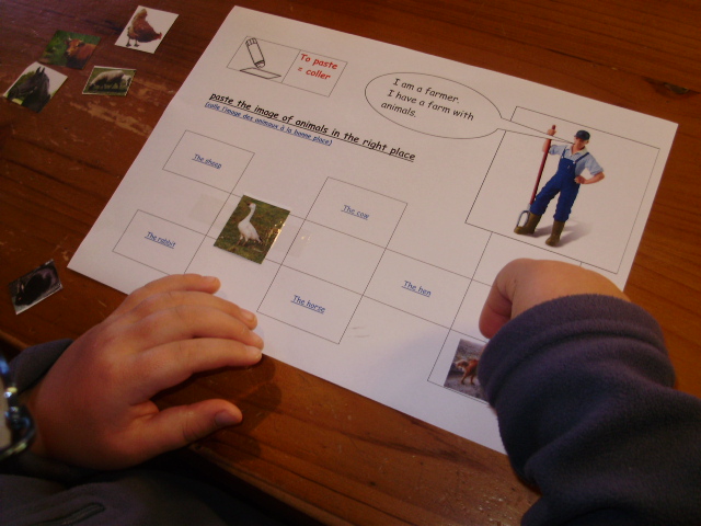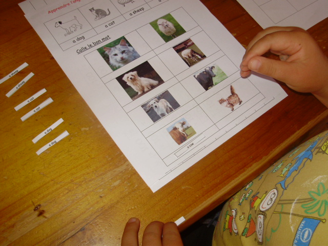 doit mettre chaque étiquette dans la bonne case, en répétant le mot. Au