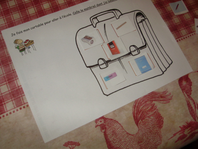 | Je découpe les étiquettes que je positionne autour de la feuille. | L'enfant